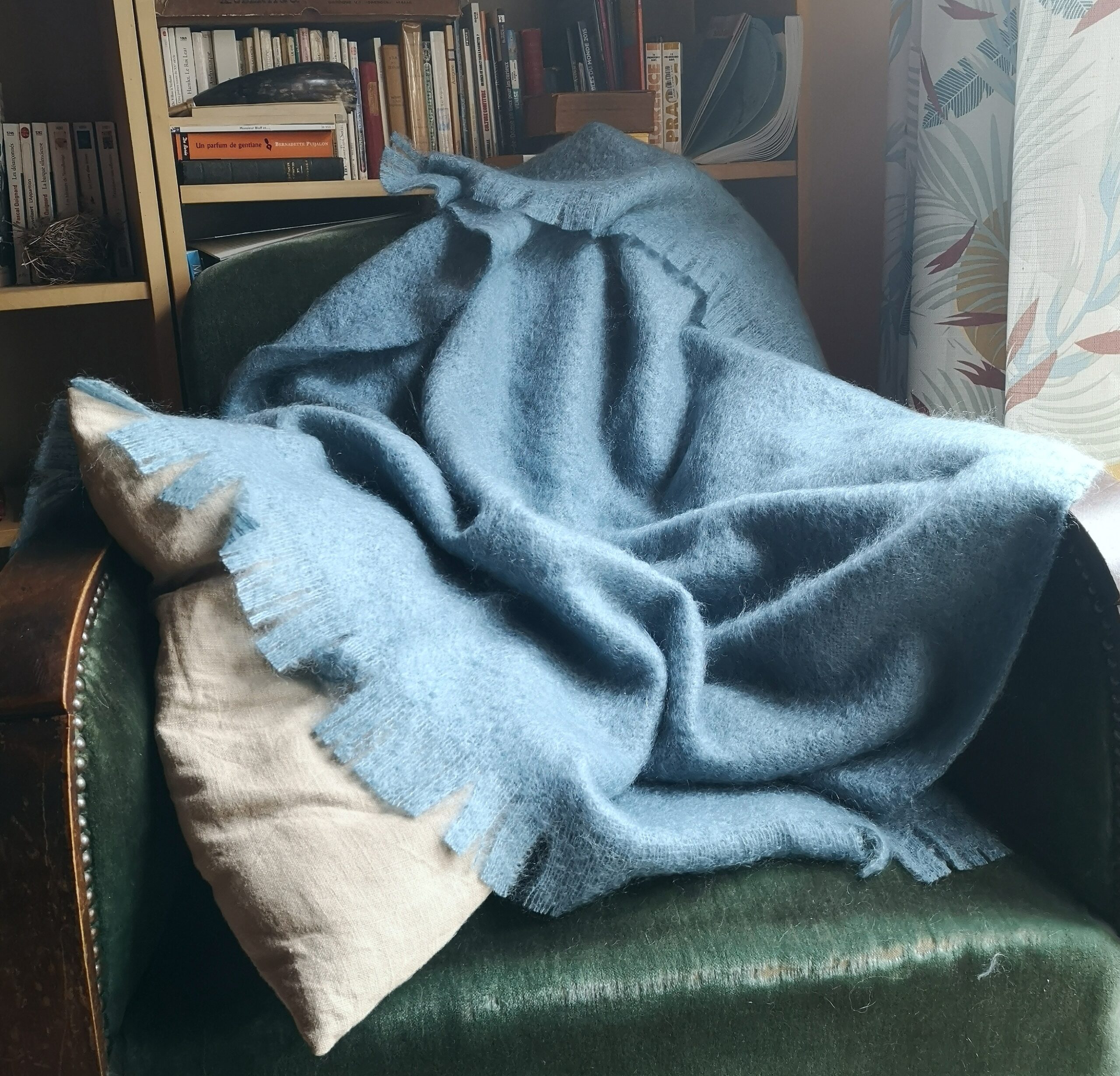 Ce petit plaid en pur Mohair 100% – 350 g / m2 – est un incontournable de la Boutique à Mareuge. En effet, cet accessoire – aussi décoratif que pratique – vous accompagnera dans tout votre intérieur (salon, chambre ou bureau). Il vous tiendra très chaud avec légèreté et douceur. Il décorera ainsi avec élégance et raffinement votre canapé, lit ou fauteuil. Sa taille : 130 cm /100 cm.