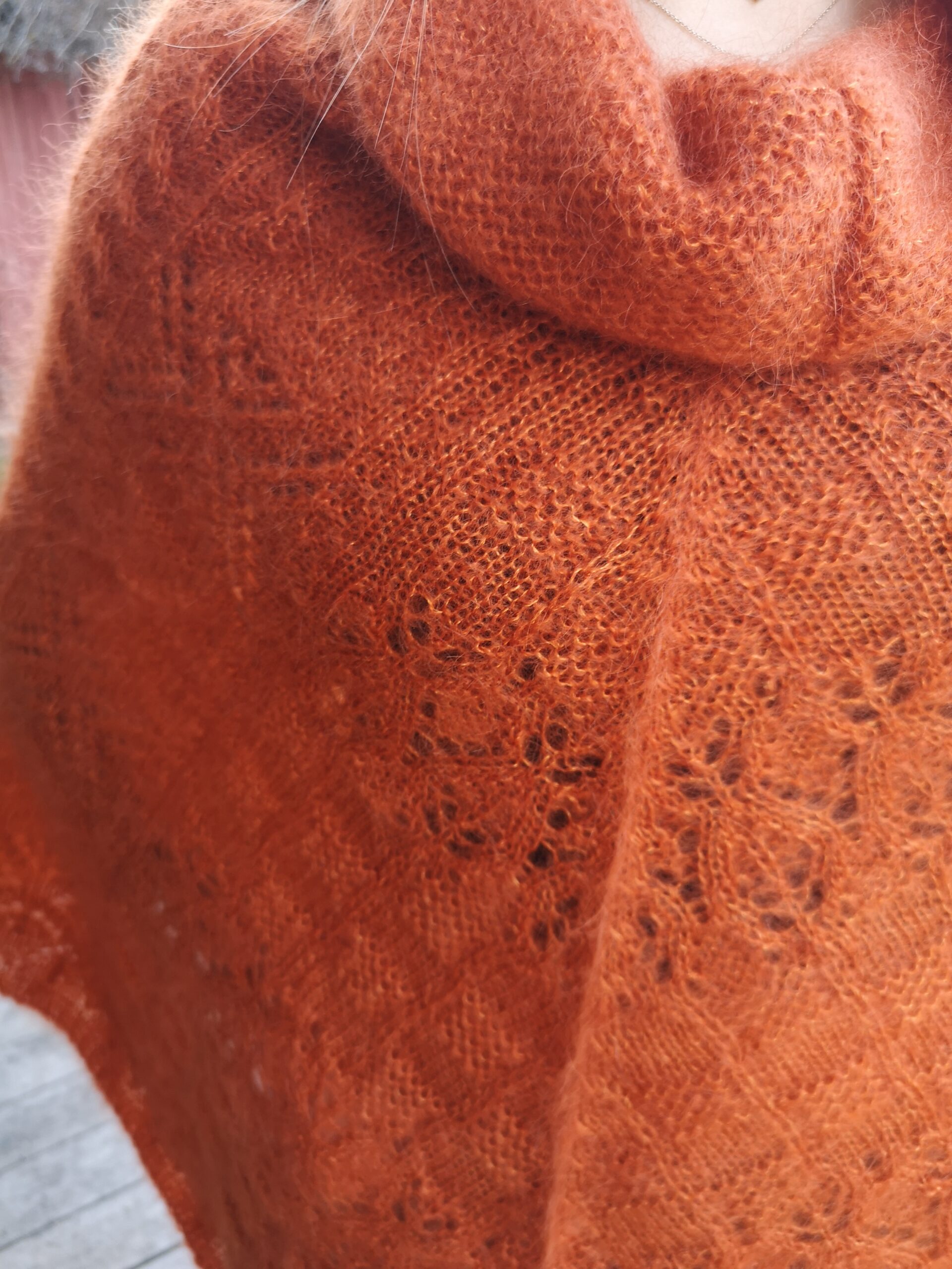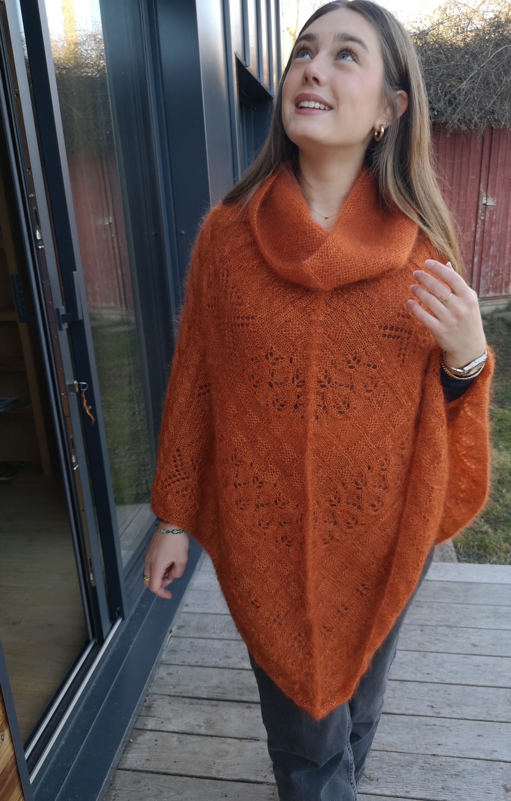 Ce magnifique poncho épais en Mohair Cuivre, très bien travaillé avec de jolis points pourra être porté en extérieur comme en intérieur. Sa grande taille vous couvrira parfaitement. Son col roulé et son épaisseur vous protègeront du froid. Article très enveloppant de demi-saison ou à porter sur une petite veste en hiver et à garder à portée de main en belle saison pour les fraîcheurs du soir !