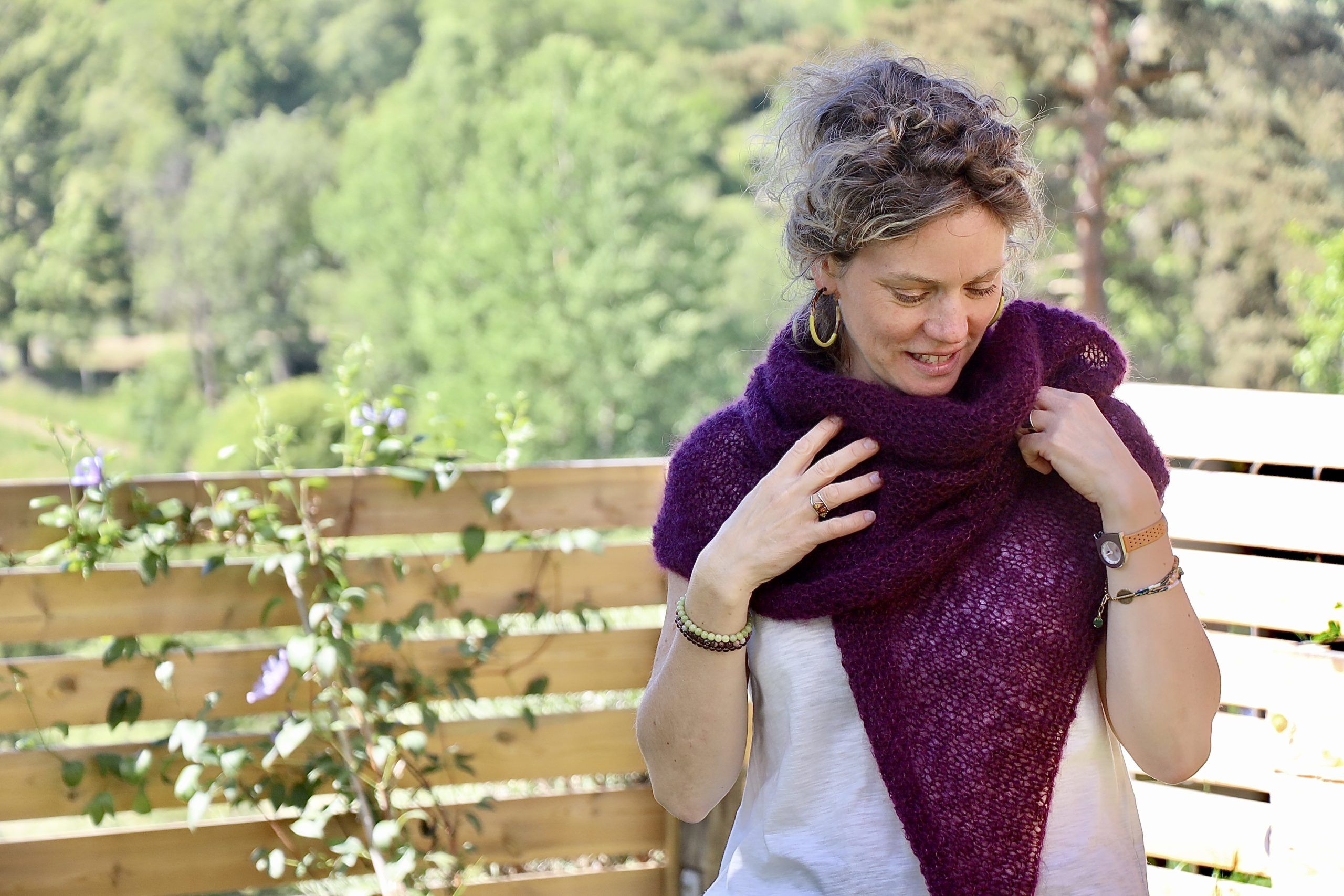 Le Châle Monne tricoté au point mousse vous offrira tout son côté vaporeux et gonflant. Il est en Mohair et Soie.