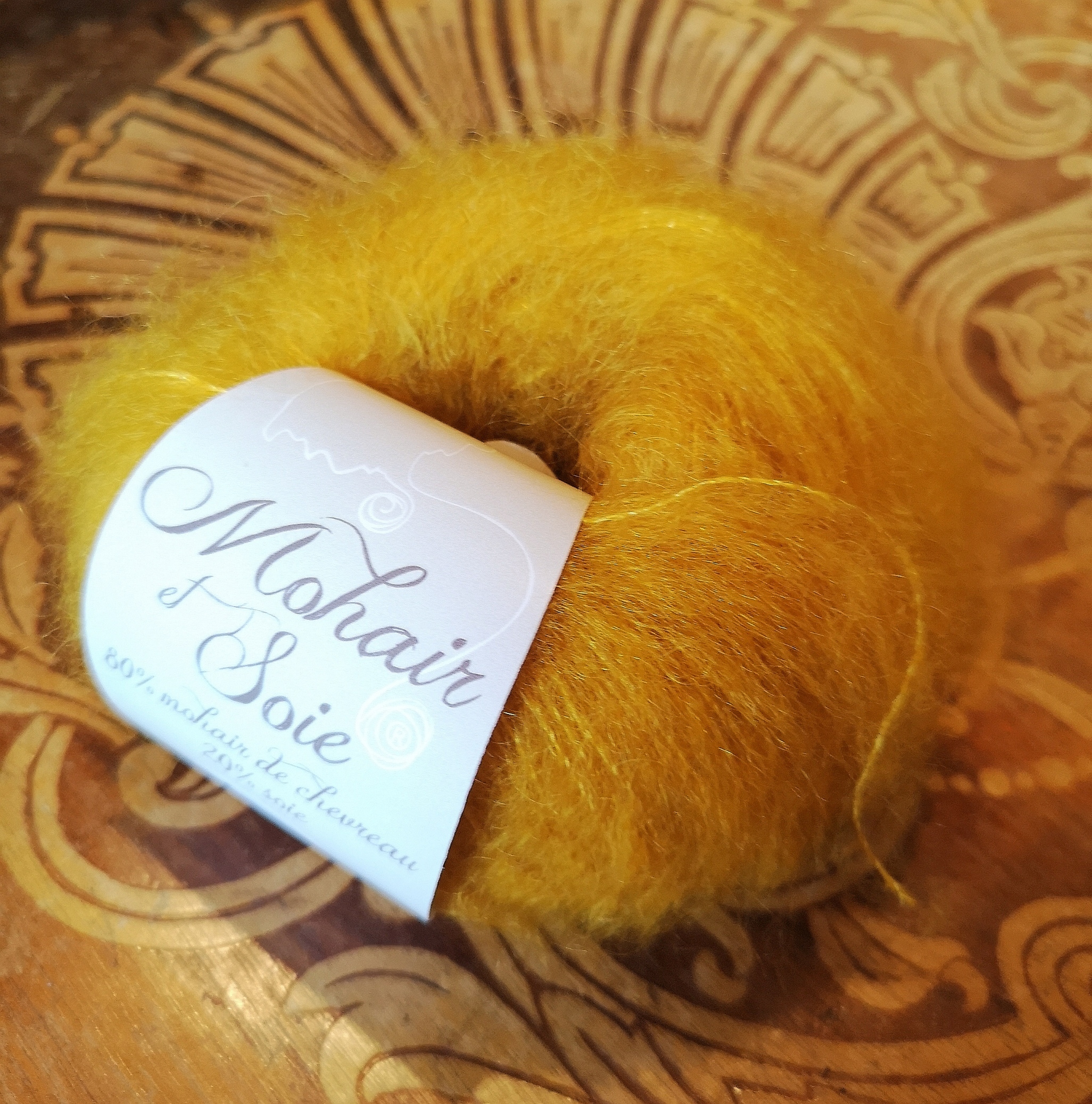 Toutes les pelotes (dont Soleil ) sont en Mohair & Soie, elles sont fabriquées avec 80% de Mohair de chevreau et 20% de Soie. Ce Mohair est issu d’élevages Français de chèvres Angora. Les animaux sont tondus deux fois par an dans les fermes. Les toisons de mohair sont triées à la main par mes soins.